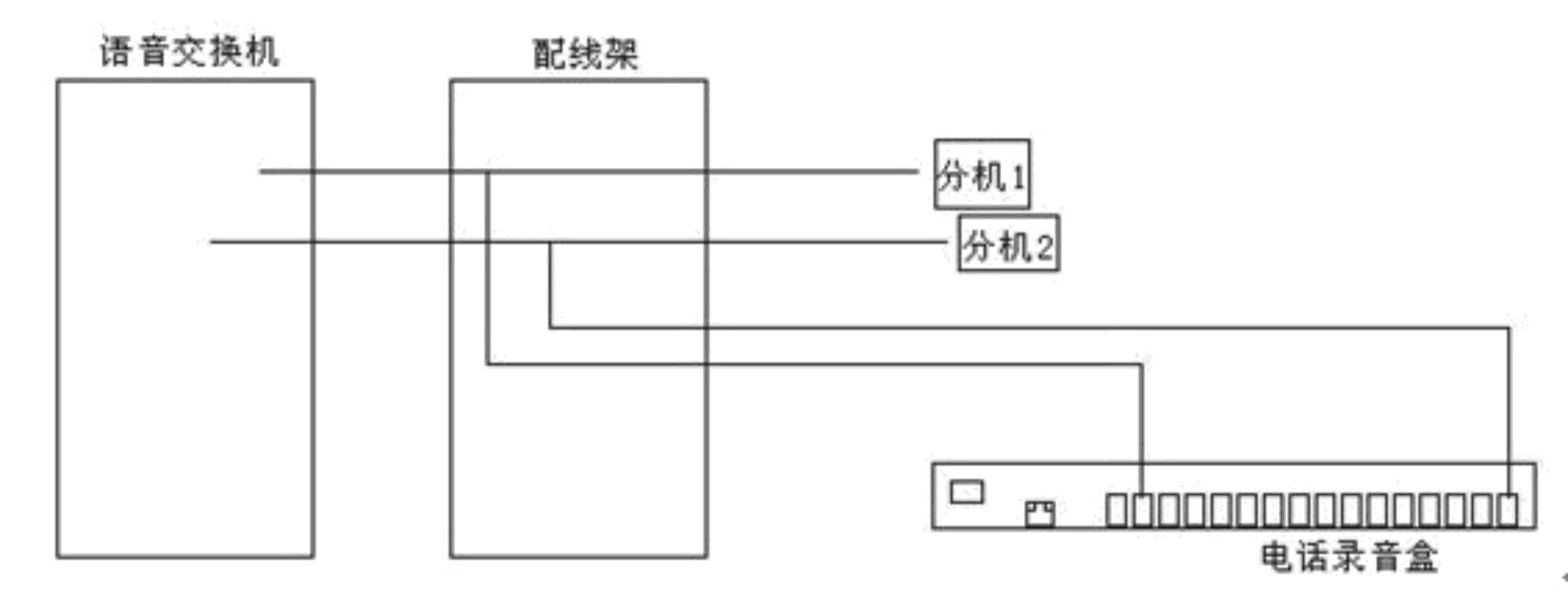 若您机房有配线架,则按上图所示即完成安装。从配线架上分机接线处再引出一条线接到拾音器录音盒上即完成。